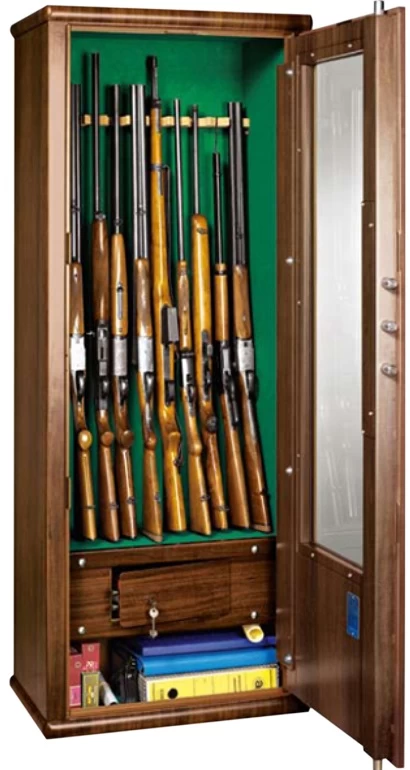 Представляет собою элитный оружейный сейф премиум-класса, наилучшим образом подходящий для хранения коллекционного оружия. Сейф отличается высоким качеством исполнения, достойной устойчивостью к взлому, а также – эстетичным дизайном, превращающим его в красивый предмет меблировки, который будет прекрасно смотреться на фоне любого интерьера вашего дома.
