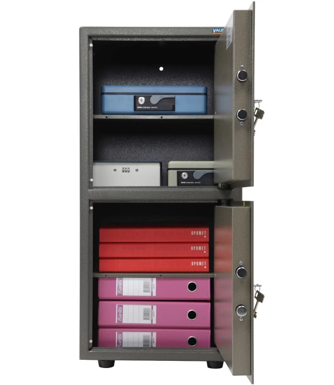 Выбрали эту модель по одной простой причине - сейф из двух секций. Это оказалось очень удобно, можно разграничить доступ! В других моделях мы такого не нашли. Если снять полки, то пространство еще увеличится. Цена вполне рыночная. Замки немецкие. Довольны не только покупкой, но и обслуживанием.